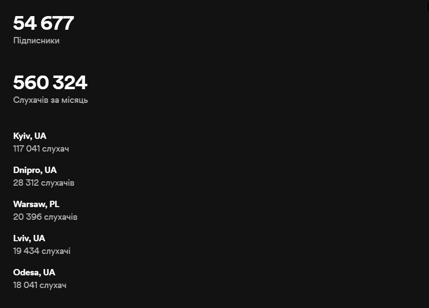 З Apple Music артистка отримує від 25% роялті у загальному пирогу, Spotify – від 10%, свідчать дані Pomitni. Решта зборів рівномірно розподіляється між платформами ТikТоk, META, deezer, Soundcloud, Amazon Music та TIDAL, каже Подолян.