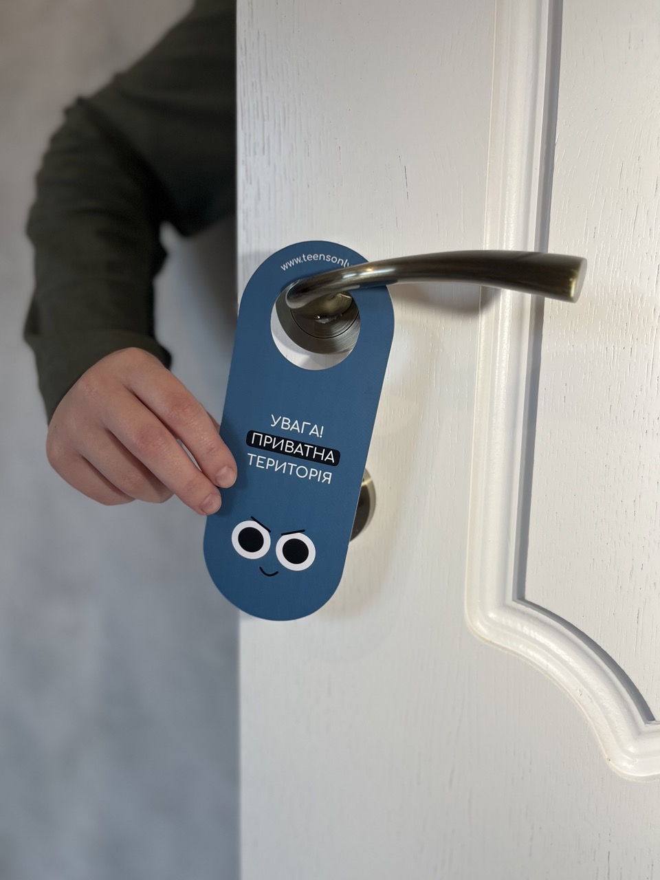 В лютому цього року під час зйомок відео-проєкту “teens talk”, присвяченому захисту персональних кордонів підлітків, виявилось, що найчастіше “домашні” порушують кордони тінейджерів, коли заходять в їх кімнату без стуку. Так народилась ідея створити серію стоп-хенгерів на двері кімнати підлітків, які б інформували інших членів родини про необхідність дотримуватись правил поваги персональних кордонів та попереджали б, якщо підліток хоче побути наодинці із собою.
