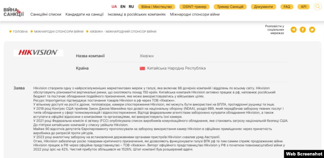 У тому ж 2023 році Антимонопольний комітет роз’яснив, що українські державні замовники систем відеоспостереження можуть відмовляти постачальникам, які пропонують продукцію виробників зі списку «Міжнародних спонсорів війни», але все це – на власний розсуд.