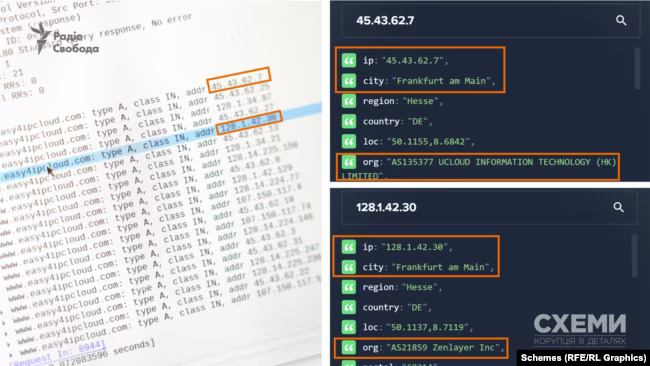 Як вдалось встановити під час експерименту, це – сервери Easy4ipcloud, які належать американській Zenlayer та китайській uCloud і знаходяться у Німеччині. Відповідно, орендує ці сервери виробник – китайська Dahua.