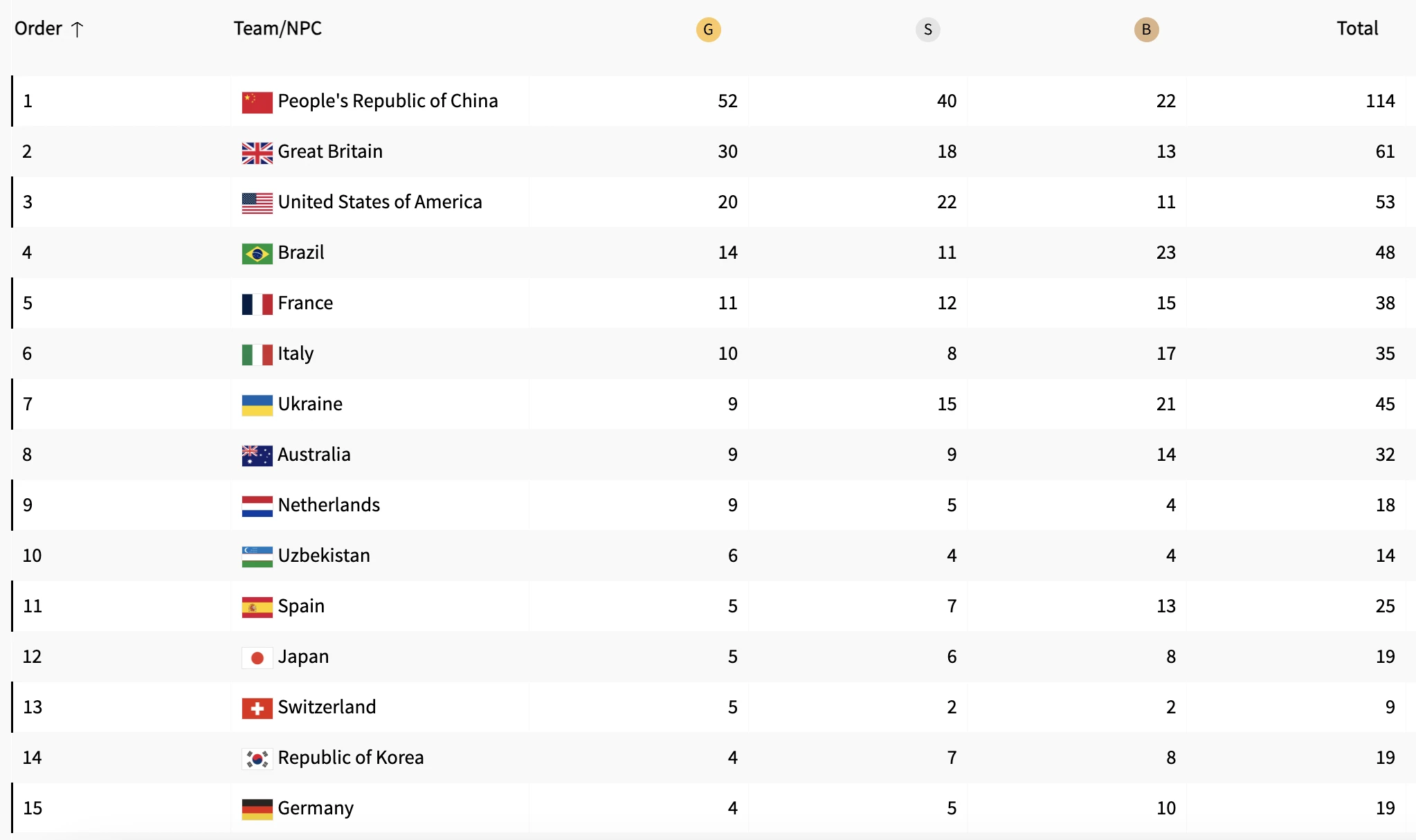 Паралімпіада-2024: який вигляд має медальний залік після 6-го дня Ігор
