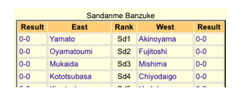 Усі професійні борці входять у спільну таблицю (банзуке). Банзуке випускається за 2 тижні до турніру, укладає його спеціальна комісія.
