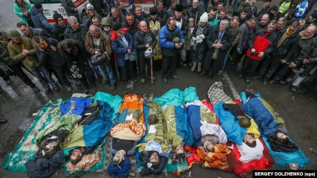 За даними Генпрокуратури, всього під час Революції гідності постраждали 2,5 тисячі людей, 104 із них загинули – більшість у лютому 2014 року. Згодом загиблих учасників акцій протесту почали називати Небесною сотнею. За даними Міністерства внутрішніх справ, від 18 лютого по 2 березня 2014 року під час виконання службових обов’язків у центрі Києва загинули також 17 силовиків.
