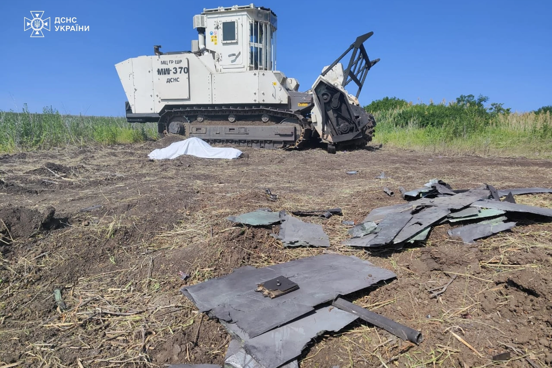 Комплекс для розмінування MINEWOLF MV-370 після атаки російського безпілотника в Ізюмському районі Харківської області. Фото: ДСНС України