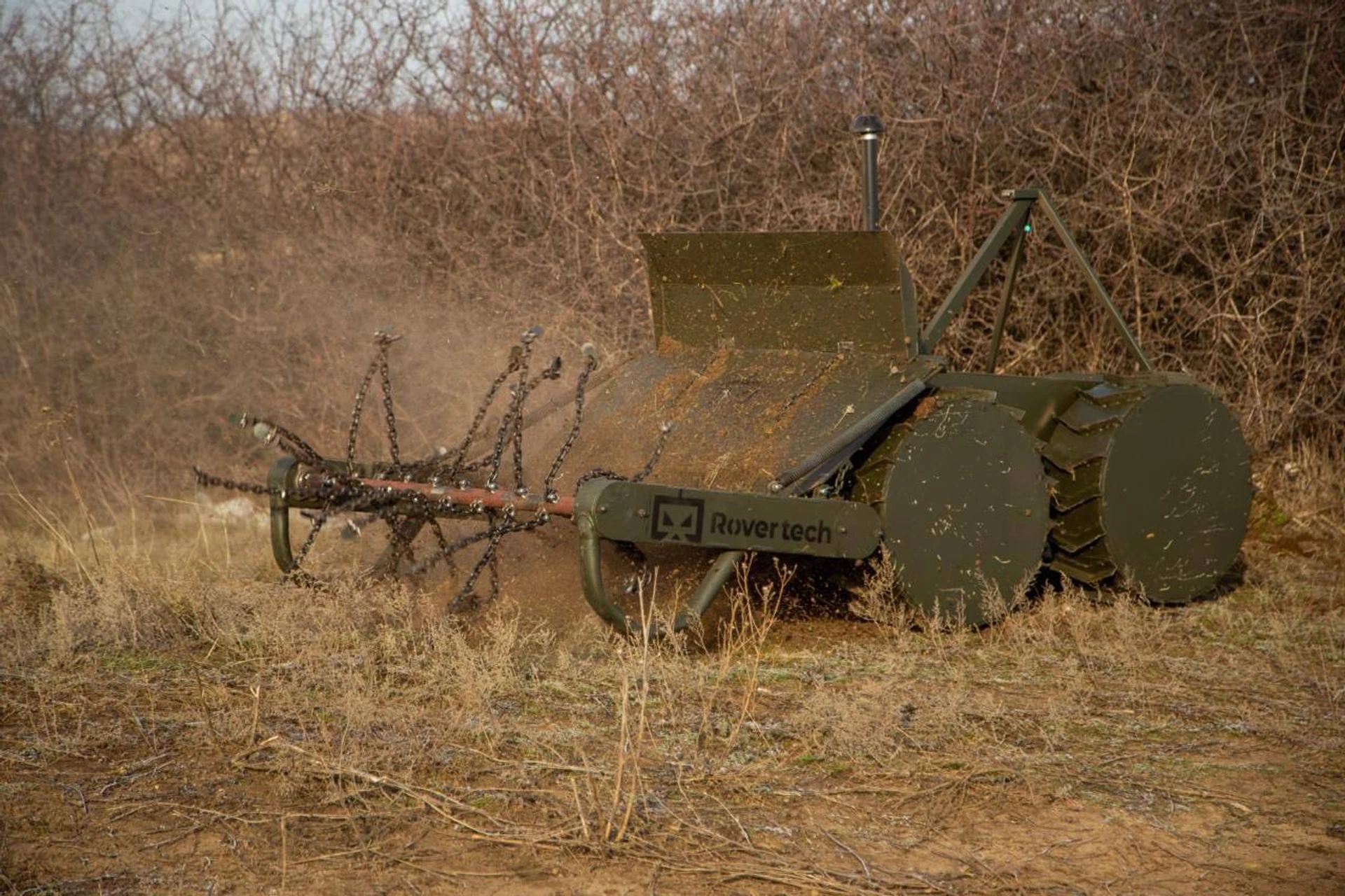 Ланцюговий тип робочого органу безпілотного механізованого комплексу для розмінування українського виробництва. Фото: Veronika Vlasiuk для “Оборонки”