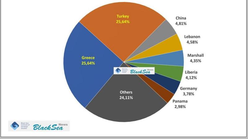 Варто звернути увагу і на реєстрацію суден, що ідуть українським морським коридором. У Інституті стратегічних Чорноморських досліджень підрахували, що розподіл власників майже не змінюється, і серед них по чверті припадають на Грецію і Туреччину.