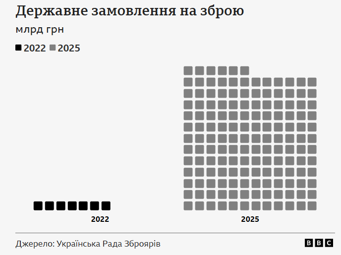 Це стало можливим завдяки збільшенню державного замовлення: з 70 млрд грн у 2022 році до 1,5 трлн грн у 2025-му, заявив ВВС News Україна виконавчий директор Української ради зброярів (УРЗ) Ігор Федірко.