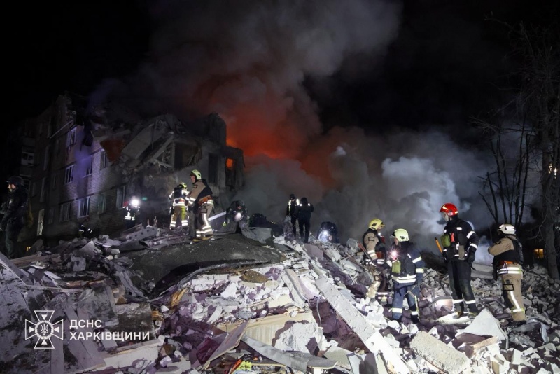 “Внаслідок ворожого удару фактично зруйновано під’їзд п’ятиповерхового житлового будинку в Київському районі Харкова. Також пошкоджено будинок, розташований поруч”, – розповів глава ОВА Олег Синєгубов.