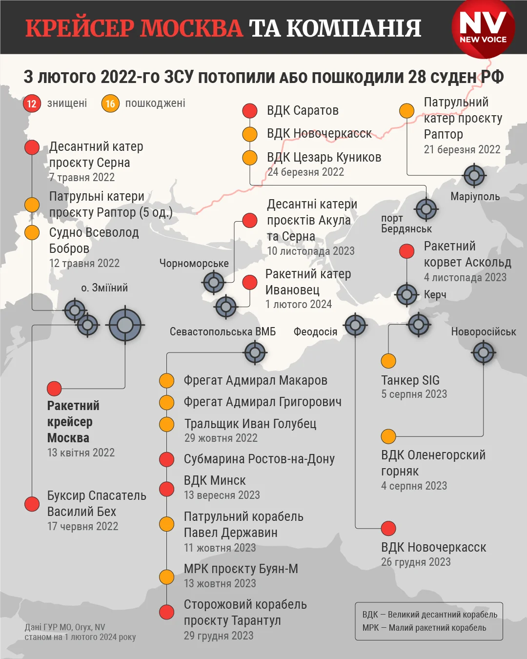 Маючи обмежені спроможності власного флоту, Україна за майже два роки розв’язаної Росією повномасштабної війни змогла знищити та пошкодити вже понад 20 російських суден.