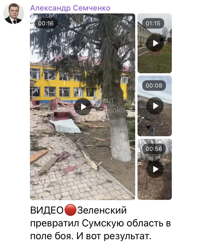Так, пропагандисти вдають, ніби у посиленні обстрілів Сумщини винен особисто Зеленський, адже той «перетворив Сумську область на поле бою». Мовляв, якби українці не підтримали рейд російських добровольчих підрозділів на прикордонну Білгородщину, обстрілів області можна було б уникнути.