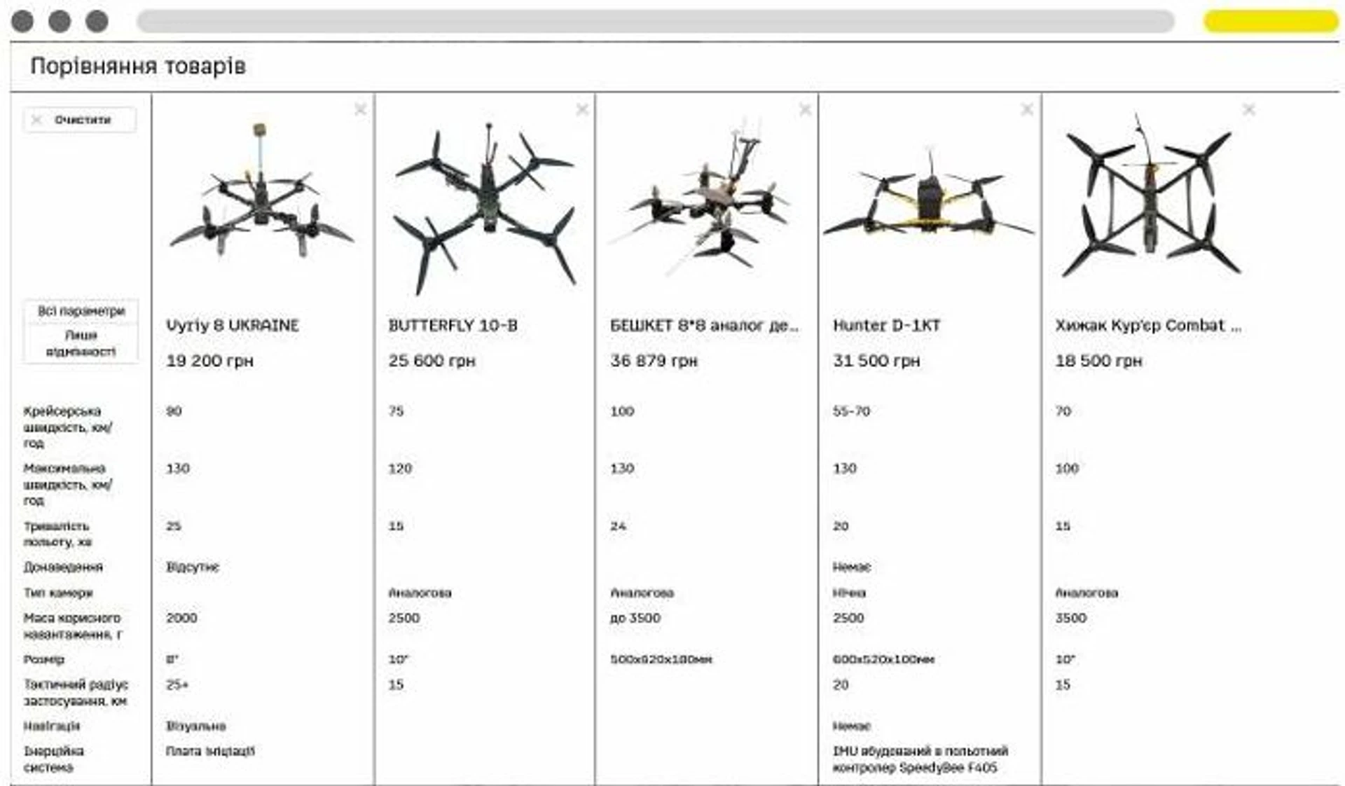 Можливість порівняння товарів на платформі Brave1Market. Фото: Brave1