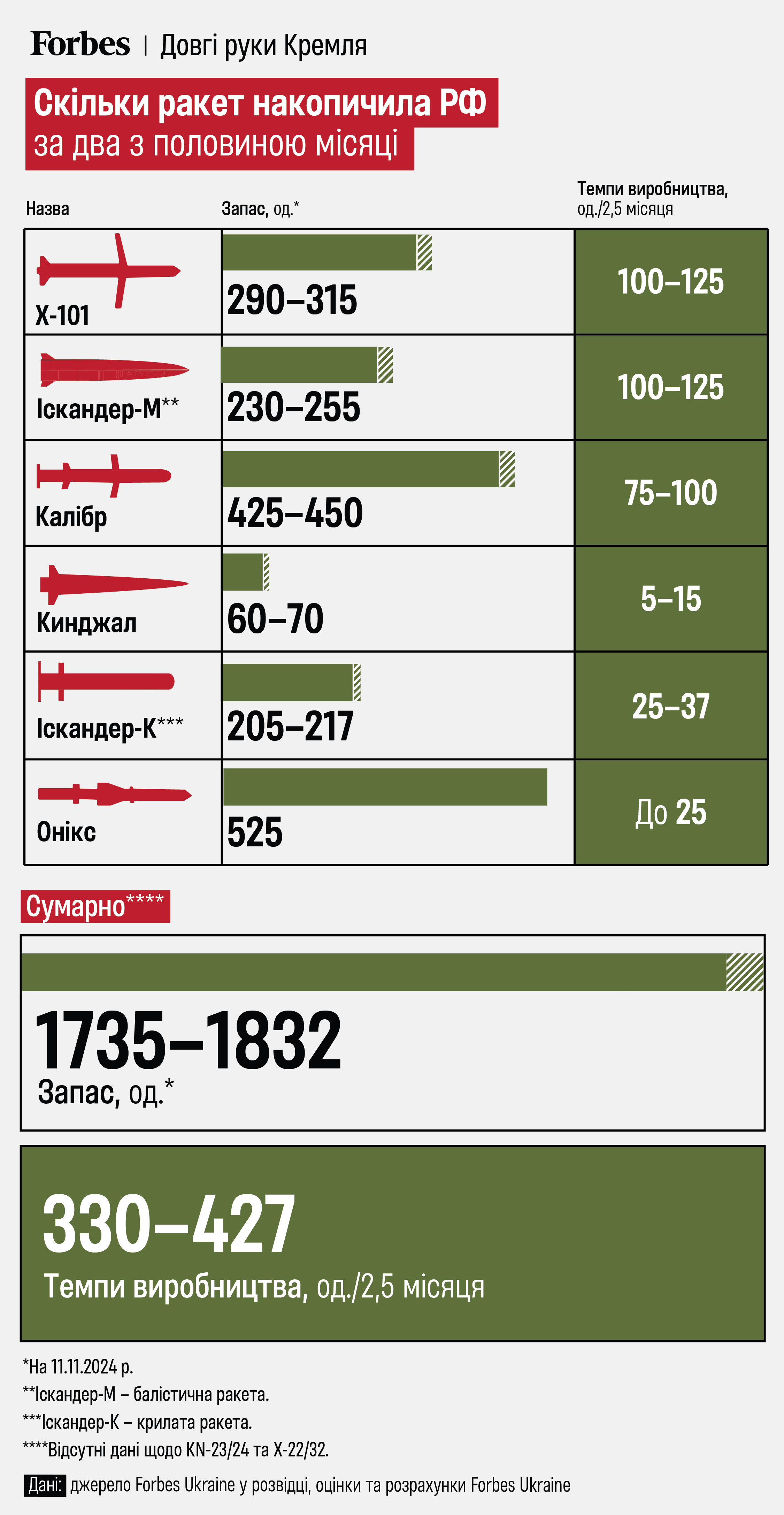 Скільки ракет накопичила РФ за два з половиною місяці Фото інфографіка Forbes Ukraine