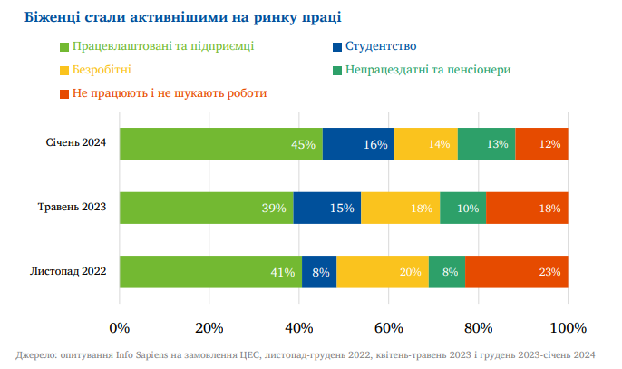 Українці, які після повномасштабного вторгнення РФ знайшли прихисток за кордоном, поступово інтегруються в іноземні ринки праці