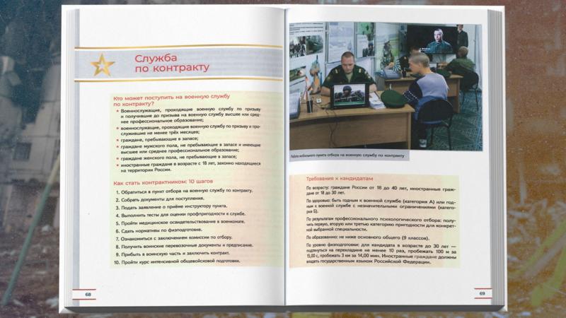 Інша частина нового підручника, на перший погляд, присвячена детальному опису структури Збройних сил РФ. Та чим далі, тим більше шкільне видання стає схожим на агітплакат.