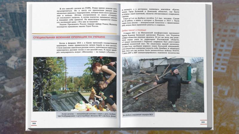 Окремим блоком – на кілька десятків сторінок – у підручнику йдеться про так звану “спеціальну воєнну операцію в Україні” [повномасштабне вторгнення Росії].