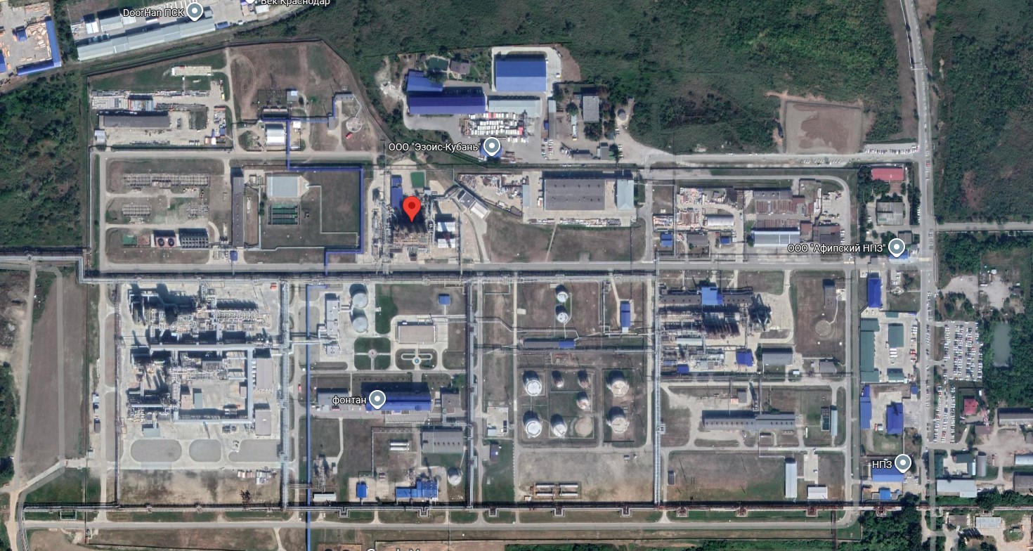Координати установки АТ-22/4 на території Афіпського НПЗ. Фото: Google Maps