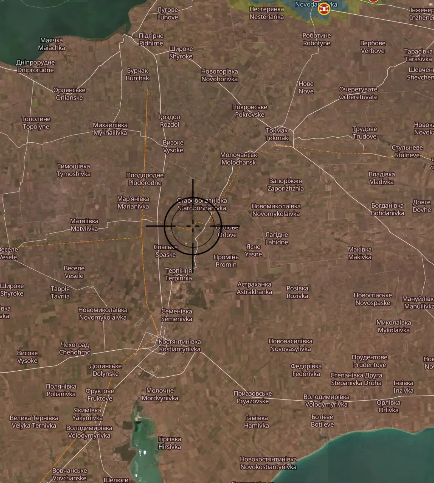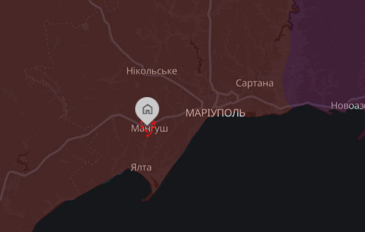 Населений пункт Мангуш на Донеччині. 11 березня 2026 року. Джерело: DeepState