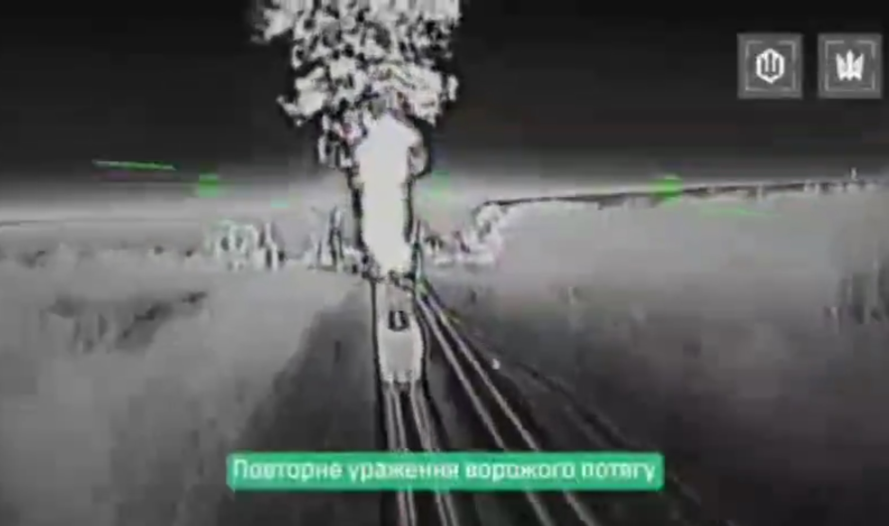 Момент першого ураження російського потяга на Запоріжжі 12.03.2026. СТоп-кадр з відео “Пруфи Дніпра”