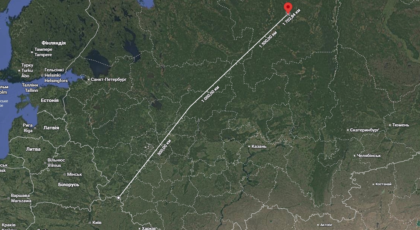 Дрон над містом Ухта 12 лютого 2026 року. Джерело: “Оперативний ЗСУ”