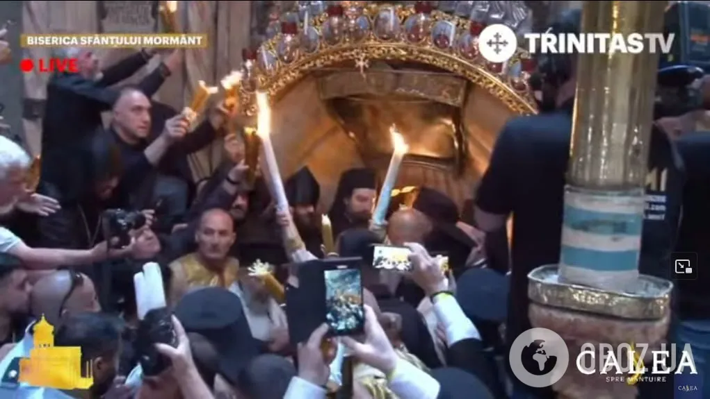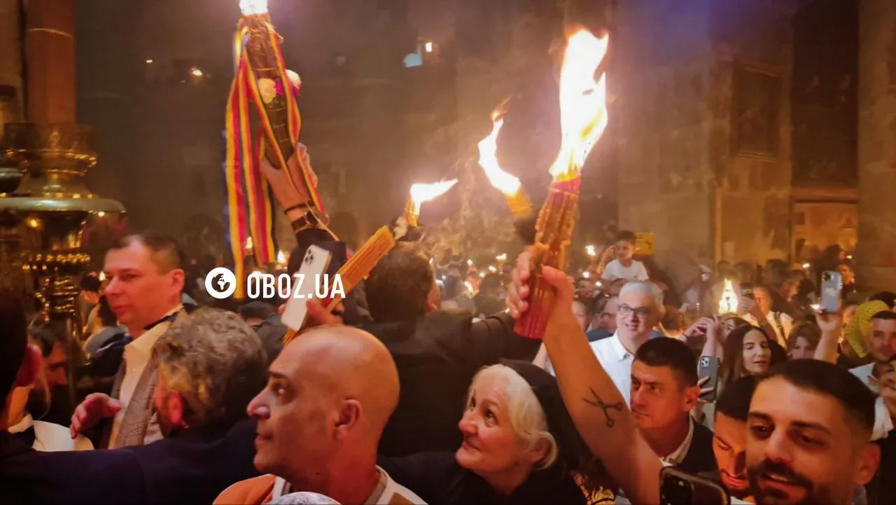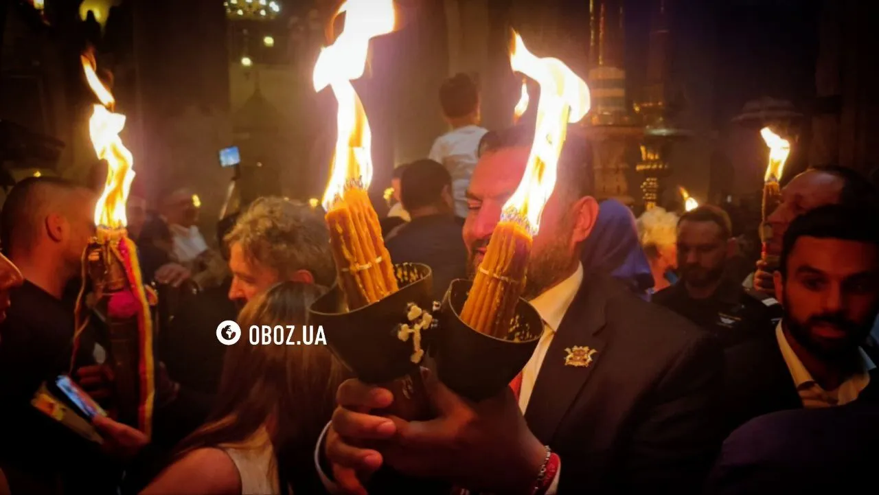 Представники семи християнських конфесій (православної, вірменської, католицької, греко-католицької, коптської, протестантської) чекали на сходження Благодатного вогню під стінами храму. Коли це сталося, патріарх запалив і виніс із храму 33 свічки, які символізують кількість років земного життя Ісуса Христа. Тепер представники духовенства повезуть диво зі Святої Землі додому.