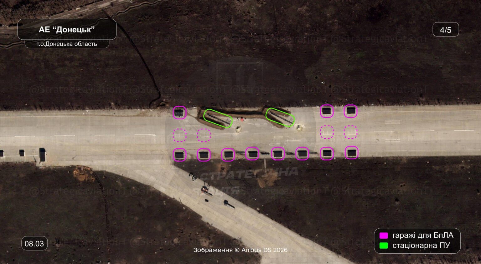 Нагадаємо, що 7 березня 2026 року, Сили оборони України уразили місце зберігання, підготовки та пуску дронів-камікадзе Shahed у районі Донецького аеропорту. Підрозділи Ракетних військ та артилерії спільно з авіацією Повітряних сил використали ракети ATACMS та SCALP для ураження цілей.