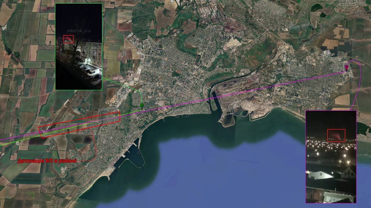 Удар завдали за координатами 48.058029, 37.774843, що неподалік Донецького аеропорту, де розміщується місце підготовки та запуску дронів-камікадзе типу Shahed.