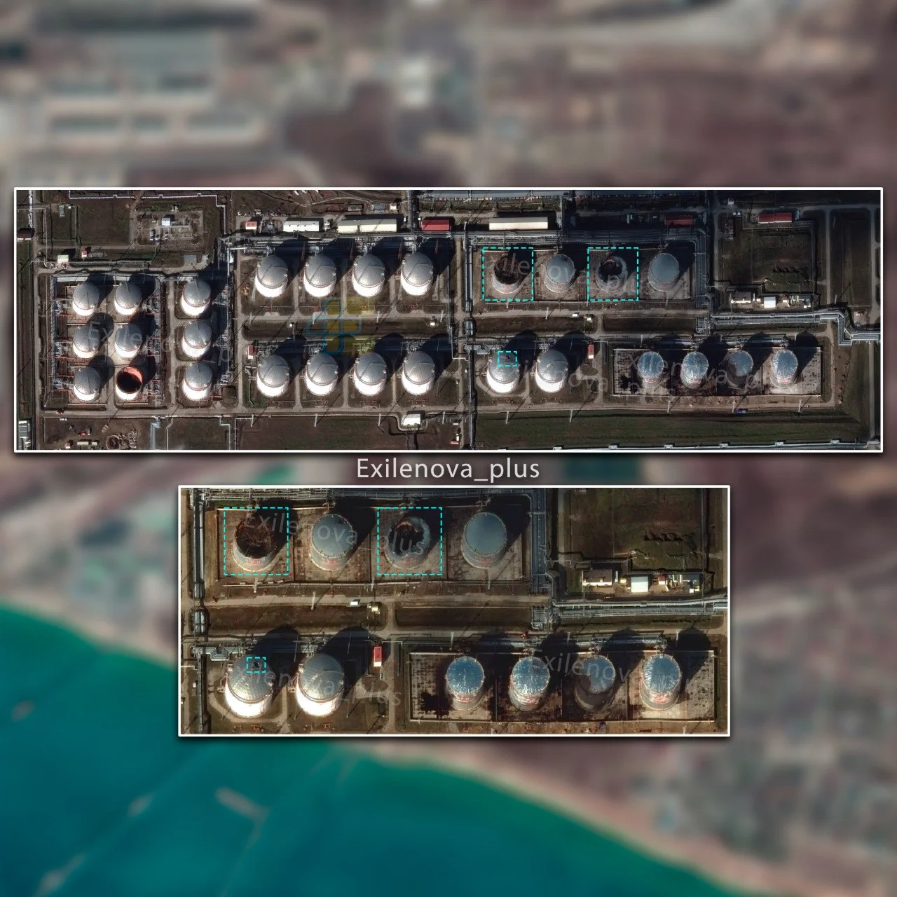 Своєю чергою OSINT-аналітики Exilenova+ опублікували знімки результатів ураження резервуарів на Таманьнефтегаз.